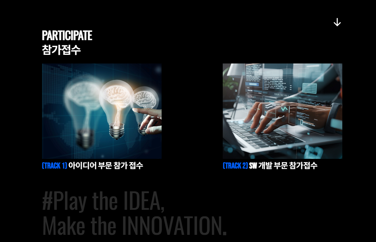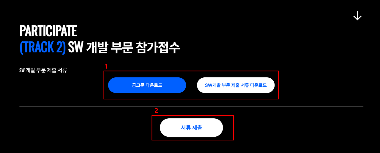 각 부문별 페이지에서 참가 신청 양식 작성 및 필요 서류 (압축 파일로 통합) 제출