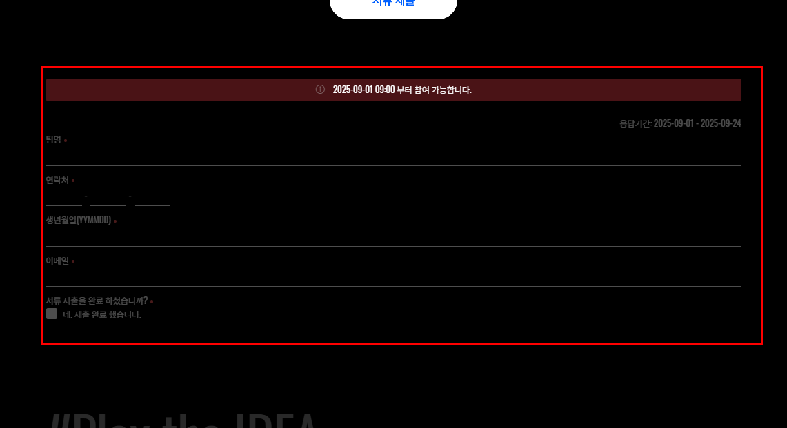 서류 제출 완료 후 공모전 운영 중 연락할 대표 연락처 기제 필수